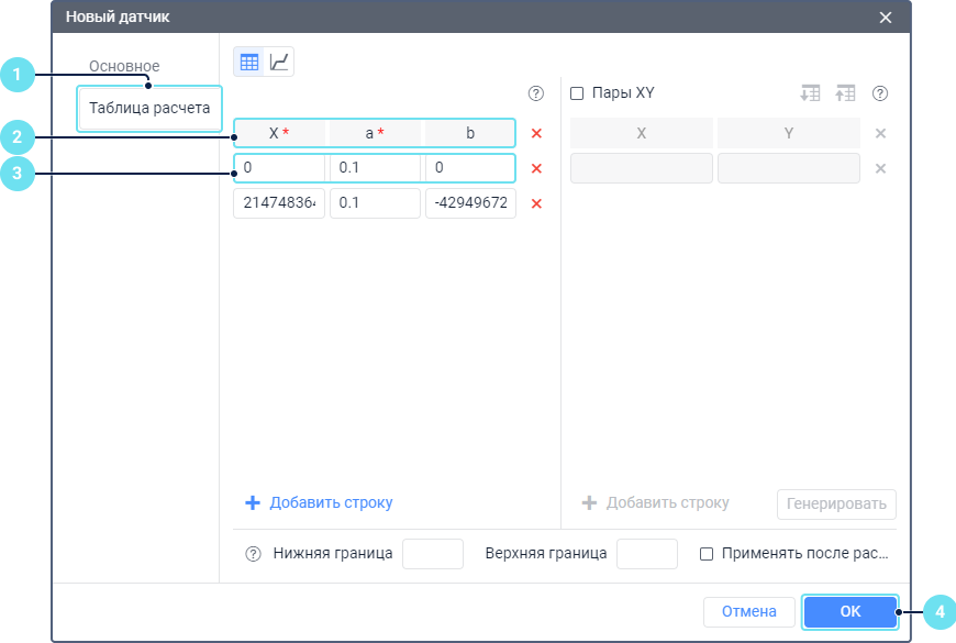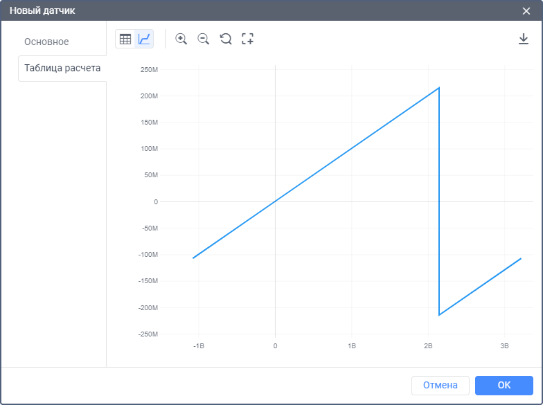 Откройте вкладку Таблица расчета в свойствах датчика.