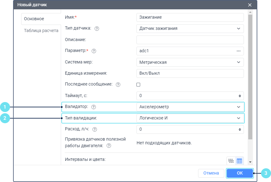 | Суммировать | Тип валидации, при котором значения валидирующего и основного датчиков складываются. |