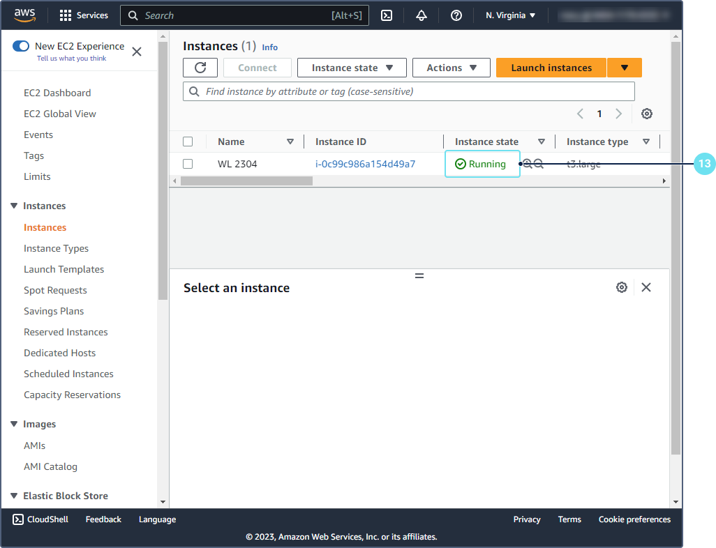 Войдите в консоль EC2 и выберите вкладку Instance.