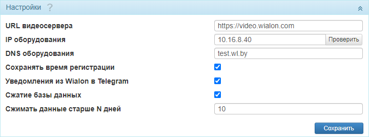 URL видеосервера Адрес сервиса для обработки и хранения видеофайлов с устройств.