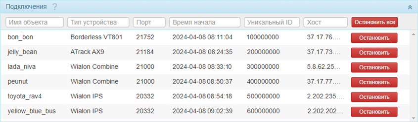 | Хост | IP-адрес, с которого поступают данные от объекта. |