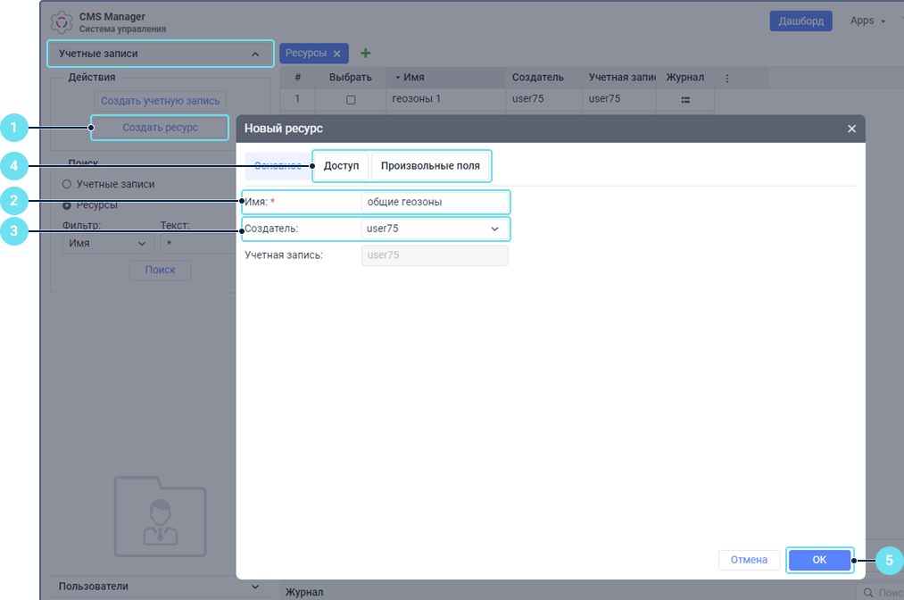 Ресурсы могут быть созданы только в системе управления CMS Manager одним из двух способов: