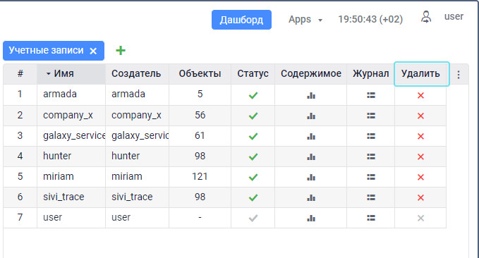 Чтобы удалить учетную запись, нажмите на иконку