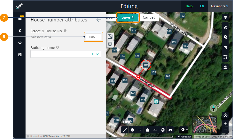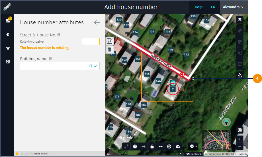 Выберите инструмент Добавить номер дома и нажмите на место, куда нужно добавить адрес.