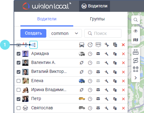 напротив необходимого водителя в списке водителей или их групп. Если у вас нет права доступа Создание, редактирование и удаление водителей на ресурс, то иконка неактивна (