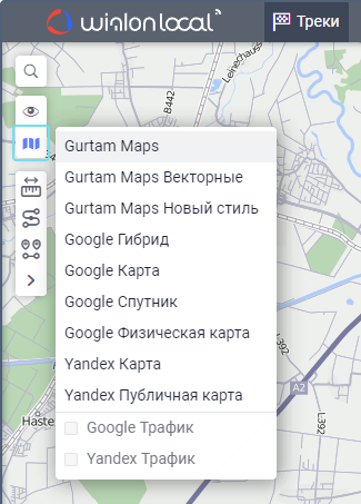 Для добавления и удаления видимых слоев на карте используйте кнопку