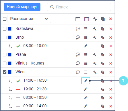 рядом с именем расписания.