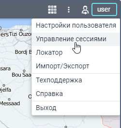 Чтобы открыть окно, в правом верхнем углу экрана нажмите на имя пользователя и выберите пункт Управление сессиями.