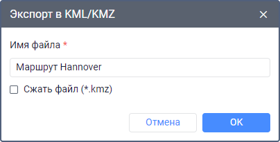 и укажите имя создаваемого файла (не менее 4 символов). Если включить опцию Сжать файл, то он архивируется и сохраняется в формате KMZ.