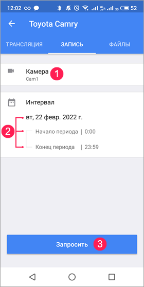 - В строке Камера и выберите одну из настроенных камер, с которой вы хотите получить запись.
