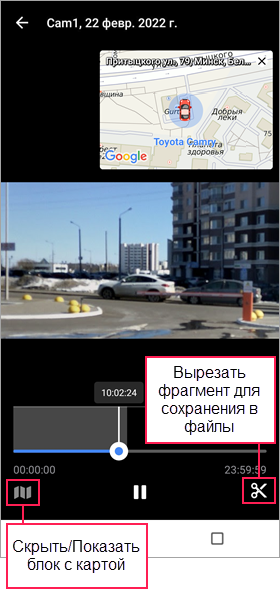 | Вырезать фрагмент записи для сохранения в файлы. | |