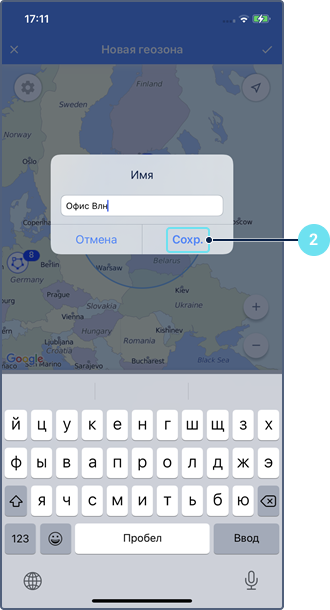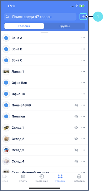 В приложении можно создавать только геозоны-круги. Чтобы создать геозону, выполните следующие действия: