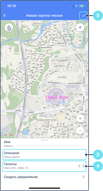 Для создания группы геозон выполните следующие действия: