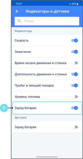- Отобразить текущий уровень заряда батареи в карточке объекта