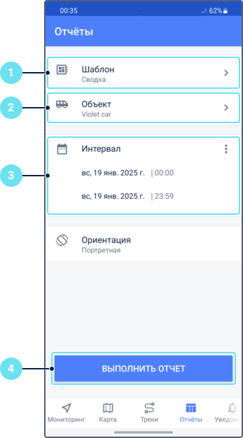 - Укажите интервал времени, за который вы хотите построить трек объекта.