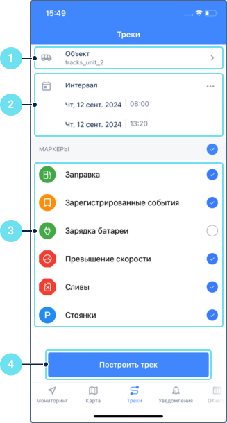 На вкладке Треки выберите объект, трек которого вы хотите построить.