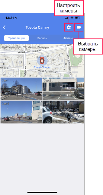 Чтобы увидеть видеотрансляции только с определенных камер, нажмите на иконку
