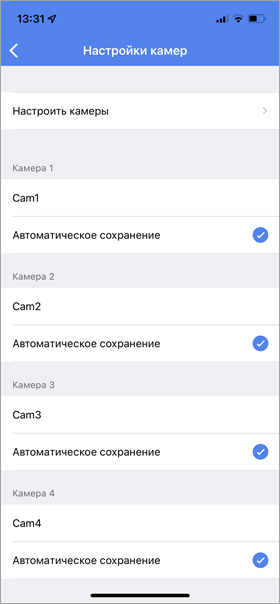 Если в списке показываются не все или лишние камеры, нажмите на строку Настроить камеры и с помощью переключателя включите или отключите необходимые. Максимальное количество камер для одного объекта — 16.
